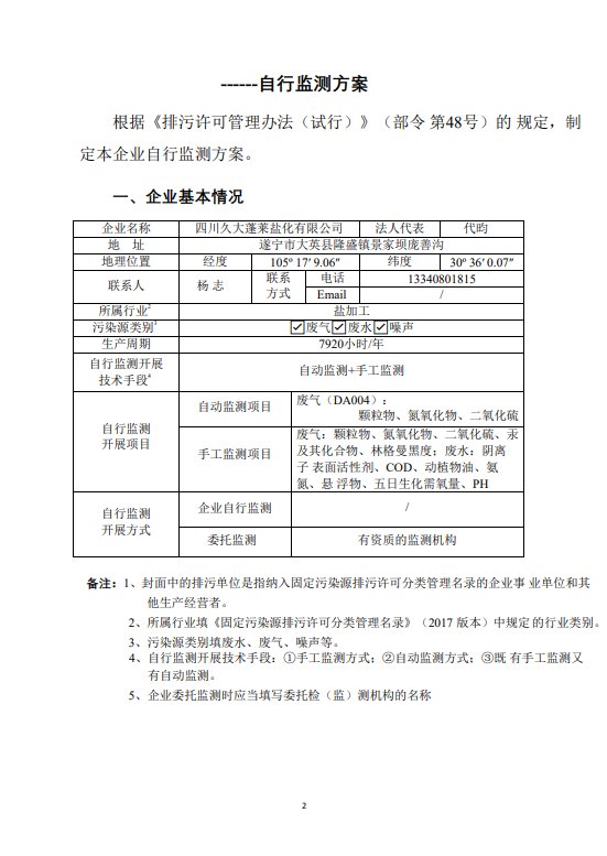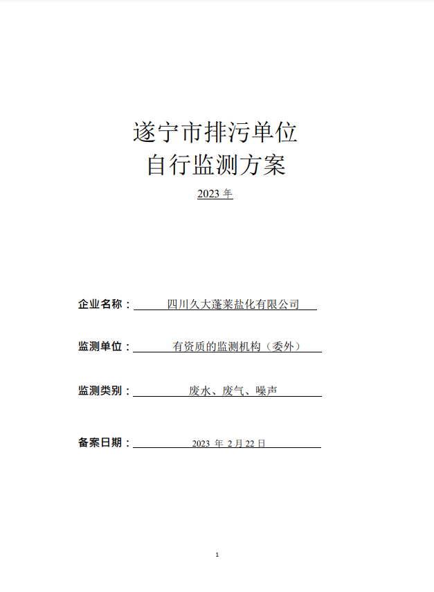 久大蓬萊鹽化2023年自行監(jiān)測方案